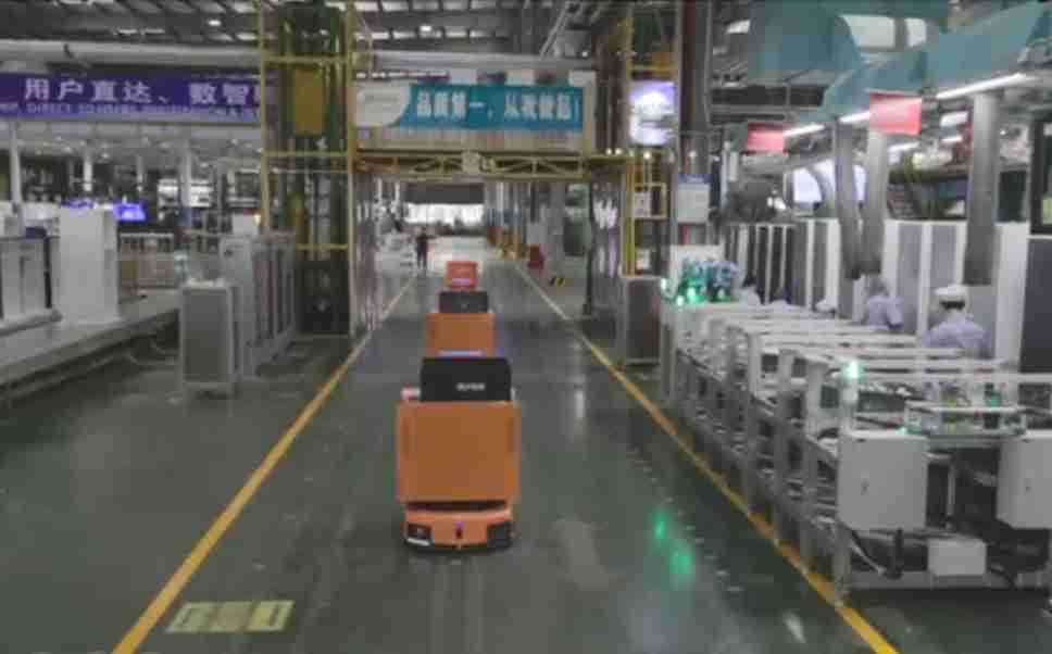 为车载冰箱物流配送打造的智能解决方案,,包含产中物流通过潜伏举升AMR搬运至线边,,产后成品物流智能仓储,,流程包含产中物流智能齐套入库,,,,线边安灯叫料AMR智能配送至线边,,,,成品入库、、出库,,,,通过无人堆高车机器人,,,智能仓储管理替代人工作业管理,,,实现更高存储、、、、更高效率、、更具柔性化的解决方案。。